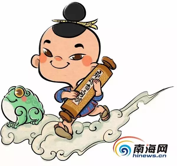 陜西歷史博物館唐妞設計師二喬先生介紹,南溟子的設計創(chuàng)意出自《南溟奇甸賦》,以海南島黎族原生態(tài)人物造型為基礎,提取海南五指山海洋、熱帶風情、融入海南民族元素和傳統(tǒng)人物造型,結合中國童子畫的特點,演繹出一個活潑、可愛、富有正義感充滿好奇心的南海之子動漫組合人物形象,由其開啟探索南海文明、海南文化之旅。