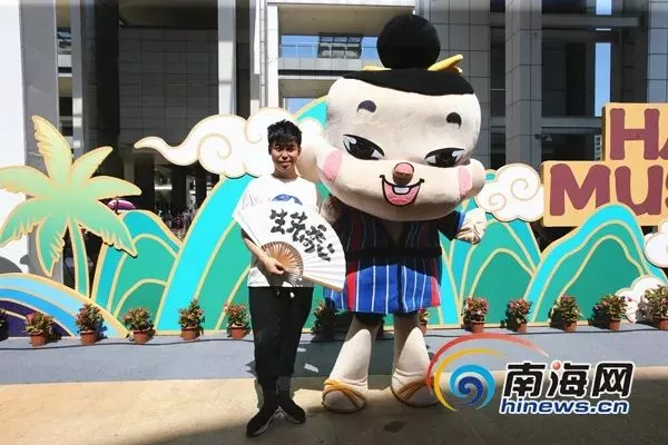 “南溟子”設計師二喬先生和“南溟子”卡通人物合影。 南海網記者陳望 攝