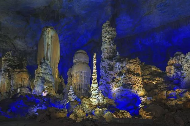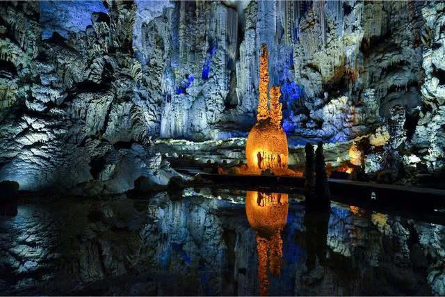 織金洞風(fēng)景區(qū)位于貴州省織金縣境內(nèi),分為織金古城、織金洞、結(jié)河峽谷、洪家渡等四大部分??椊鸲词窃摼皡^(qū)的精華,屬于高旱位溶洞,是一多層次、多階段、多類型的巖溶洞穴。這是一個奇妙的地下世界。洞內(nèi)巖溶生長獨(dú)特,景物規(guī)模宏大,雄偉壯觀,千姿百態(tài)。洞內(nèi)有各種奇形怪狀的石柱、石幔、石花等,組成奇特景觀,身臨其境如進(jìn)入神話中的奇幻世界。
