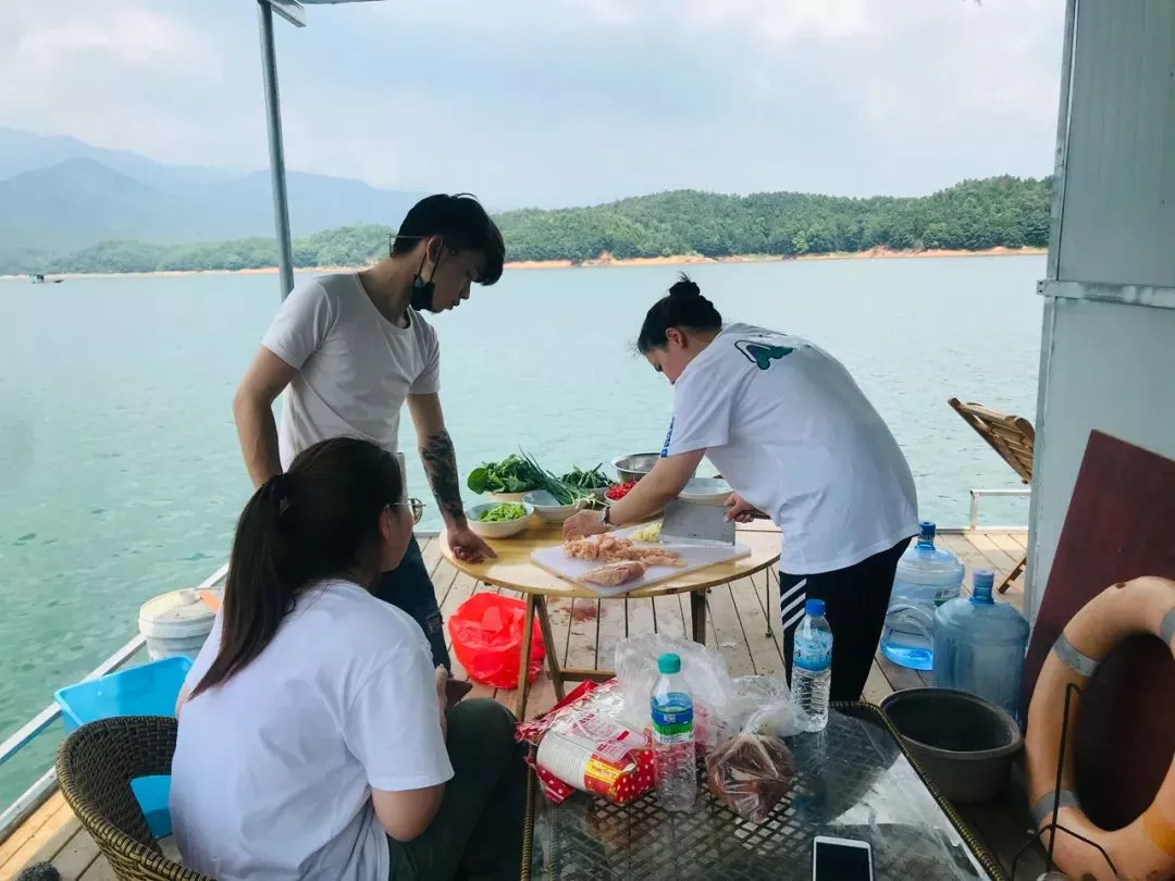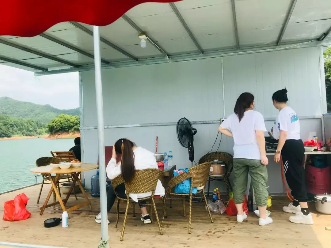 中午在武功湖上面進(jìn)行自己做飯、釣魚