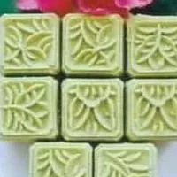 潮汕樟林古港,是明清年代“紅頭船”的“通洋總匯之地”。每逢中秋佳節(jié),千家萬戶手巧藝妙的賢慧婦女,常喜愛加工制作美食糕點———綠豆糕,其傳統(tǒng)技術工藝和加工制作方法考究,蒸熟后金碧晶瑩,入口清香甜美,風味獨特,既是一味適合時令的可口藥膳糕點,又是樟林飲食文化獨創(chuàng)的一種營養(yǎng)豐富的美食,堪稱是潮汕地區(qū)中秋糕點的佼佼者。 明代李時珍的《本草綱目》中載:“綠豆糕磨之為面,澄濾取粉,作餌燉糕……有解諸熱,補益氣,調(diào)五臟,安精神,厚腸胃之功。”古往今來,樟林僑鄉(xiāng)婦人就有用綠豆作餌燉糕的悠久歷史。加工制作綠豆糕的方法是:綠豆用清水浸漂,清洗干凈,脫去豆衣,蒸熟曬干,研磨成粉(俗稱綠豆糕志),添加白砂糖漿(砂糖加水份用文火煮成)和豬油充分攪拌均勻,倒放在糕砧板上,反復摻和揉制成糕泥狀,再用家傳木雕有“?!薄ⅰ暗摗?、“壽”字或“壽桃”、“菊花”、“雙石榴”等圖樣花紋的糕印,在壓印過程中間常加入豆沙、芝麻末、瓜冊絲、花生仁或腰果仁(研碎)為糕餡,壓印成型后一般都盛放在蒸籠內(nèi),蒸5~10分鐘就成為清香撲鼻,入口軟滑清涼,別具風味,沁人心脾,令人饞涎的樟林綠豆糕。