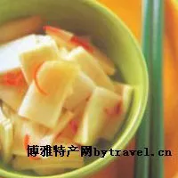 系用薺菜根腌制而成,其色黑,所以又名“黑薺”,分為玫瑰黑薺與甜味黑薺而種。在副食品中其用途很廣,可生吃,可炒肉,可涼拌,作春卷、燒賣等,若加入少許黑薺、頗能抬味,昆明人吃涼米線,也喜歡加上一點(diǎn)黑薺絲。過去昆明允香齋的出品最為有名,《續(xù)修昆明縣志》記載:“大頭菜,甘香脆美,以三牌坊允香齋及西倉坡下和羹醬園所制最佳,運(yùn)銷亦廣?!爆F(xiàn)在市內(nèi)各醬彩鋪、銷售點(diǎn)均有,分為盒裝及散裝,盒裝最適宜作當(dāng)?shù)赝撂禺a(chǎn)禮物送人 ( 昆明)