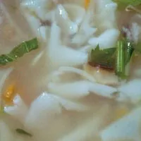 鍋邊糊的做法即是,將調制好的米漿均勻澆鐵鍋內邊緣四周而成,待米漿煮熟、烘干,再將其鏟成片狀送入鍋內沸水之中,并加以蛤蜊、香菇、蝦皮、蔥、黃花菜等配料,稍煮片刻即可。剛出鍋的鍋邊糊白脆薄潤,湯清不糊,食之細膩爽滑,清香可口。一鍋香噴噴的鍋邊糊出鍋,僅需三五分鐘,但是,糊米漿的過程卻是最考驗掌勺者的。米漿不得攤的過厚或過薄,過厚,糊片難以吸收湯水的鮮味,過薄,則易碎造成湯底不清,鍋邊糊不成片,影響口感。鍋邊糊雖源起于福州,但早已融入建陽人民生活之中。無論是早餐還是夜宵,點一碗鍋邊,再搭配一塊油餅,這便是極好的。