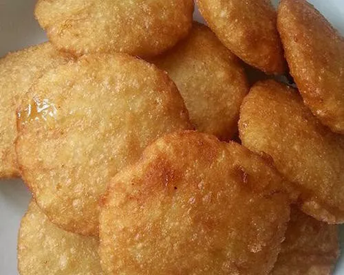 陜西油糕是陜西關(guān)中地區(qū)著名的傳統(tǒng)小吃,其淵源可上溯至唐代的燒尾宴名點(diǎn)“見風(fēng)消”油潔餅,是油炸的一種糕點(diǎn),因其色澤黃亮,表面蓬松如輕紗,結(jié)有密密麻麻的小泡,故而得名,也是陜西著名的傳統(tǒng)名小吃之一。陜西油糕尤其以三原縣的泡泡油糕和西安的炸油糕最為出名,餡是用白糖、黃桂、玫瑰、桃仁、熟面拌成的,炸好的泡泡油糕,其特點(diǎn)是色澤乳白、表皮膨松,松軟綿潤,入口即化。三原縣的泡泡油糕被中國旅游協(xié)會(huì)評選為“中國金牌旅游小吃”,富縣油糕被陜西旅游協(xié)會(huì)評選為“陜西金牌旅游小吃”,而西安的泡泡油糕先后榮獲國家內(nèi)貿(mào)部、省烹?yún)f(xié)“中華