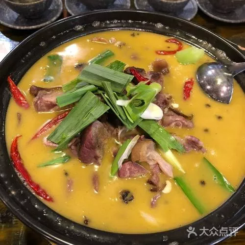 臘排骨火鍋是納西名菜三疊水的第三疊熱烈疊中的一道主菜,也是麗江傳統(tǒng)名菜,屬于滇菜,是納西人招待最尊貴客人的菜肴。臘排骨火鍋使用秘制的臘排骨,經(jīng)過酒、白糖、香料等配料腌制,清燉至軟爛但不能離骨,溢出香噴噴的排骨味。臘排骨聞起來有股淡淡的肉香,嘗起來介于臘與不臘之間,保留原有排骨的柔軟又兼有臘肉香味,入口略有鹽味而又不咸,是麗江獨樹一幟的研制葷菜。臘排骨火鍋吃法是以當(dāng)?shù)靥赜械恼核{(diào)味,鮮美濃郁,肉香汁鮮,卻愈煮愈香,再佐以當(dāng)?shù)孛拙?,其滋味不言而喻。臘排骨火鍋原來只能在宴客或是過年的時候吃,是一道經(jīng)典宴席名菜,